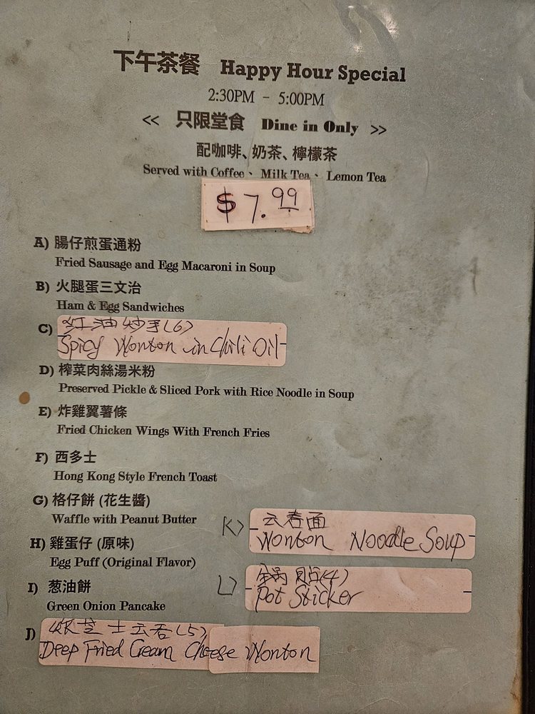 Introducing the menu at Yummy Cafe in Sacramento, CA, a Chinese restaurant that offers a wide range of delicious options. From appetizers like Salt & Pepper Tofu to soups like Wonton Soup and entrées like Sweet and Sour Pork, Peking Spareribs, and Mongolian Beef, the menu caters to various tastes. Customers rave about the nostalgic feeling, good prices, and generous portions. The reviews highlight the quality of the dishes, such as the flavorful and tender Mongolian Beef, the authentic Hong Kong flavors, and the efficient service. Must-try items include the red bean ice drink, bubble waffle, peanut butter waffle, and beef chow fun. Whether you're a fan of HK-style cafes or looking for a satisfying meal, Yummy Cafe offers a great value and a memorable dining experience.